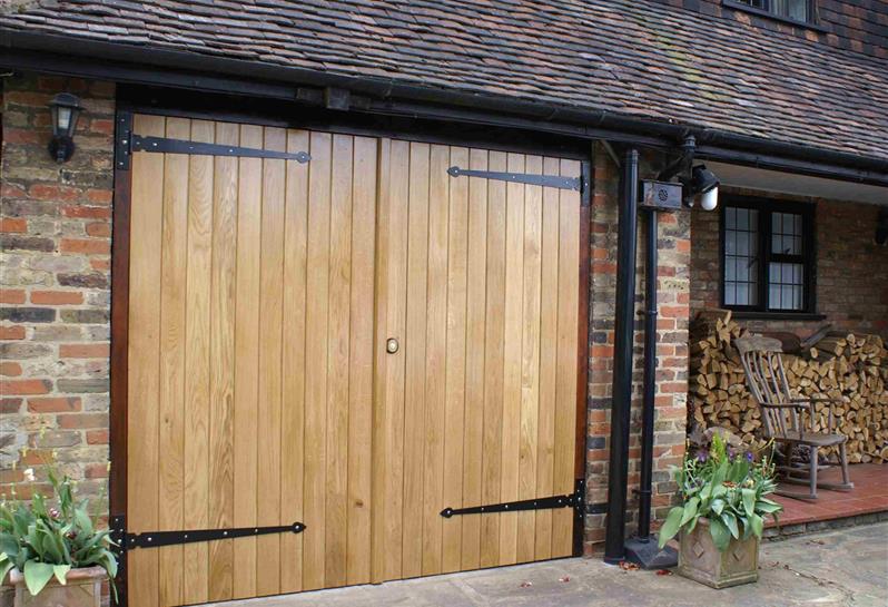 All of our Joinery is hand made here in the UK. Our garage doors are made to order and can be sized to suit. Standard sized garage doors are for bay widths of either 2.6m or 2.9m wide between posts. Our garage doors come in a choice of either softwood, iroko, idigbo or oak.