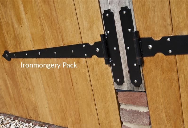 • 2 pairs of attractive arrowhead black painted steel barn hinges with fixings to oak posts.