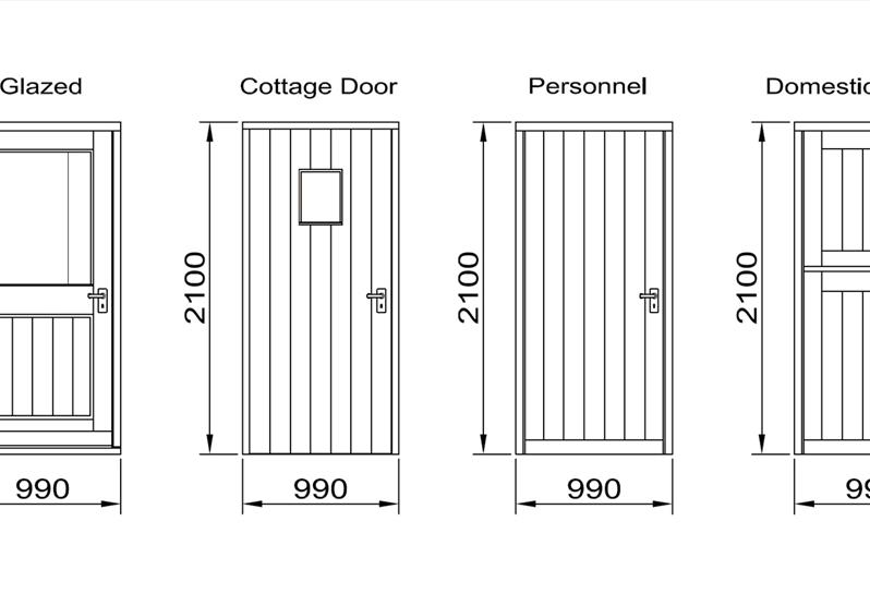 The standard personnel door is frame and ledged with v-jointed vertical boards. It includes a door frame and black ironmongery to fit on site. The personnel door comes in the option of Oak, Idigbo, Iroko or softwood. Please refer to our Material Specification page for wood treatment protection that we would advise on applying.