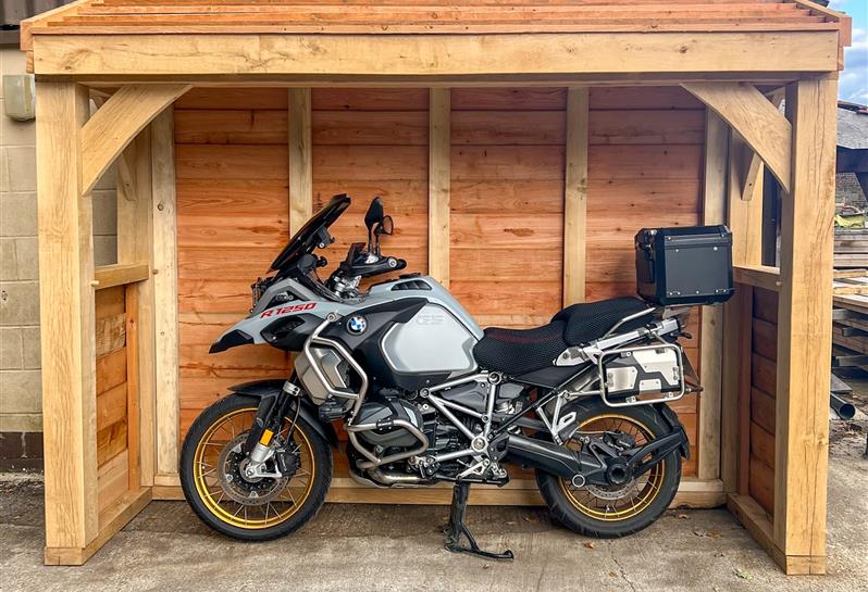 The ODC Store not only adds value, but allows properties to utilise usually wasted space. This Particular model has been designed & built for bin storage but as you can see a large BMW R1250 GS Adventure has currently taken ownership to stay out of the rain. If wanting to utilise this oak frame structure for a nice outdoor kitchen/BBQ & bar area we would recommend increasing the height and depth to give more space & keeping you nice and dry whatever the season…